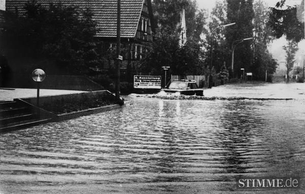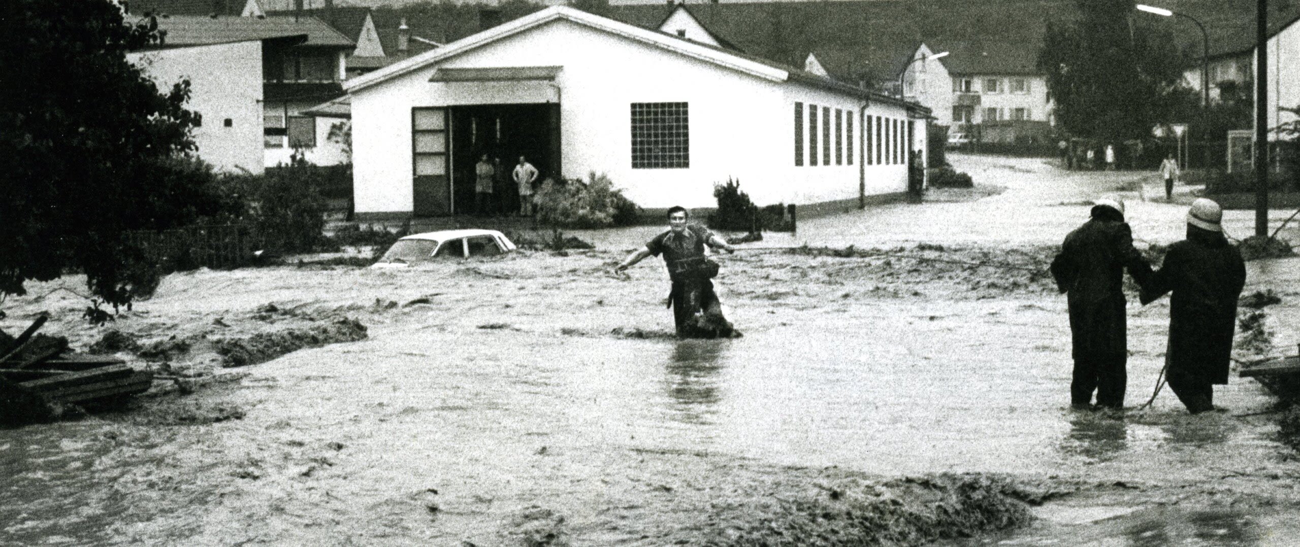 Hochwasser im Mai 1978 in Obersulm-Affaltrach. Foto: Eisenmenger, Hermann