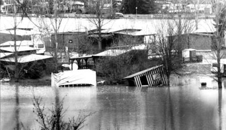 Hochwasser 1994. Land unter im Campingplatz Hirschfeldpark in Oedheim. Foto: HSt-Archiv