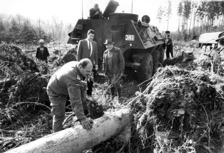 Wiebke 1990. Spätfolgen "Aktion Borkenkäfer" rollt an; die Bundeswehr hilft bei der Beseitigung der Orkanschäden. Foto: HSt-Archiv