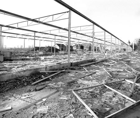 Orkan Lothar 1999. Zerstörtes Gewächshaus in Heilbronn-Horkheim. Foto: HSt-Archiv