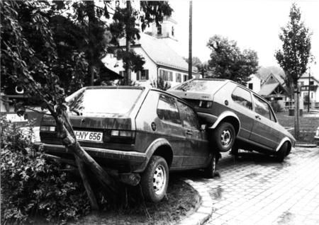Unwetter 1994 schiebt Autos in Bad Rappenau-Wollenberg ineinander. Foto: HSt-Archiv