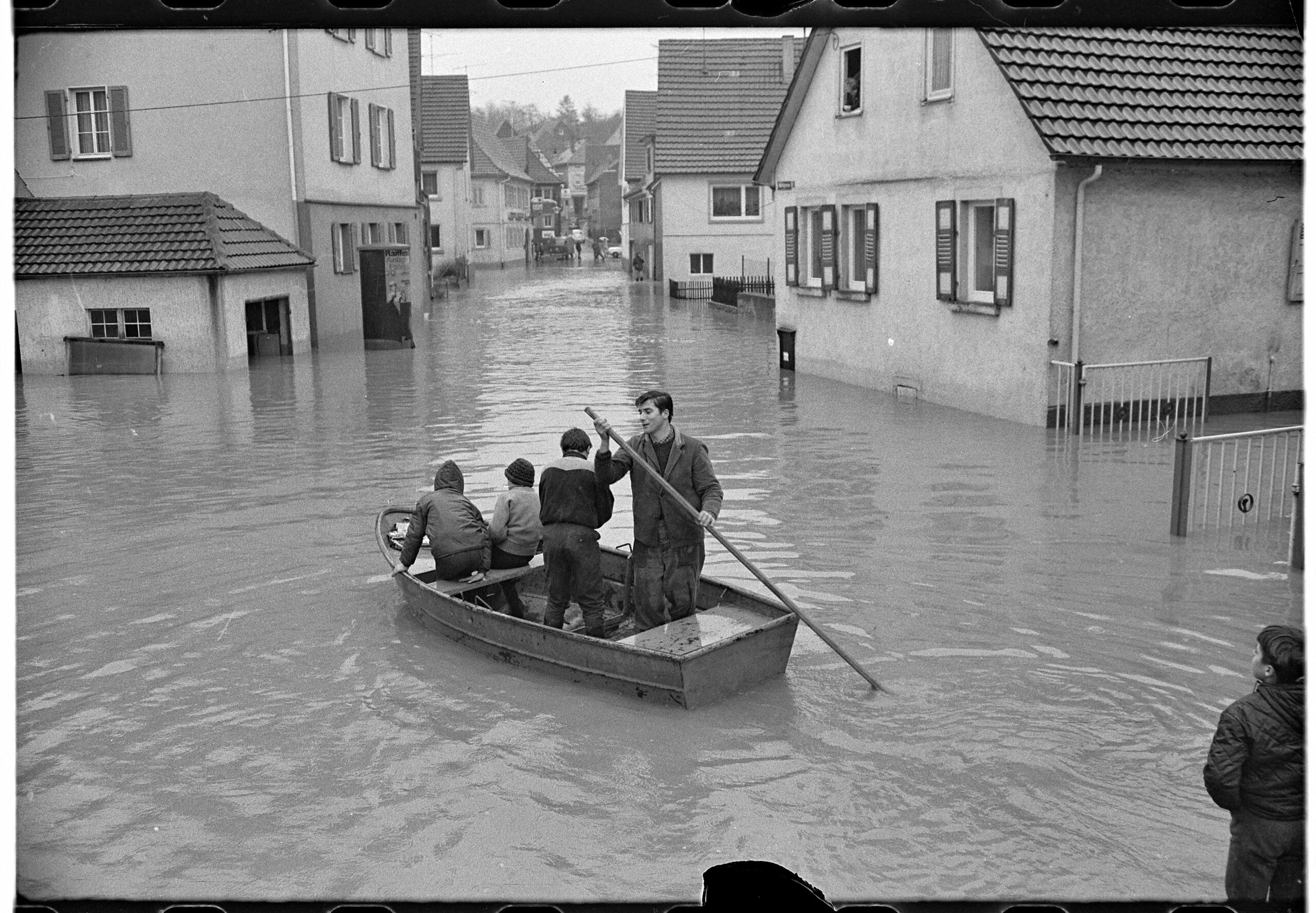 Hochwasserschäden in Bad Friedrichshall-Kochendorf. Aufnahme aus Februar 1970. Foto: Hermann Eisenmenger/HSt-Archiv/Stadtarchiv Heilbronn