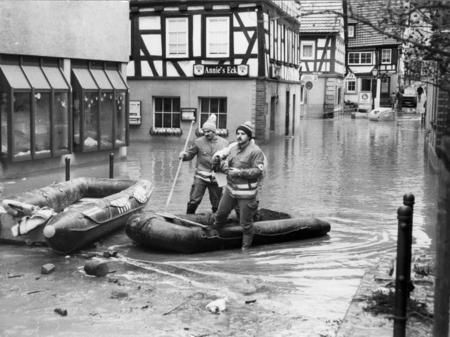 Hochwasser 1993. Überflutete Altstadt in Möckmühl. Foto: HSt-Archiv